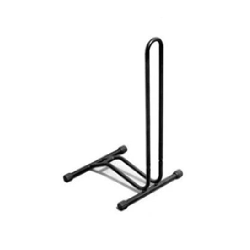 L Storage Stand designed for bicycles with wheel sizes ranging from 20" to 29". Constructed from durable steel and finished in black, this stand is compatible with various bike types, including mountain bikes, road bikes, foldable bikes, and BMX models.
